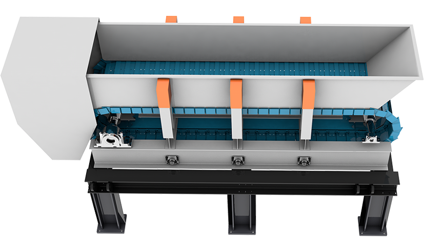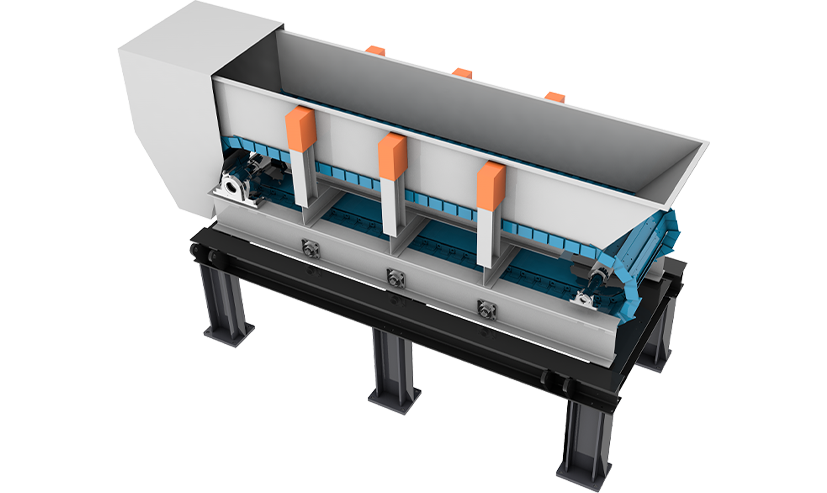 • Alimentateur à tablier DMBL1238 : la trémie d'alimentation est installée sur la partie supérieure et la trémie de déchargement sur la partie avant ; le châssis doit avoir une bonne rigidité et une bonne capacité de charge, et posséder une excellente résistance aux chocs instantanés des matériaux.